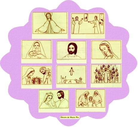 5 mystères joyeux et un cœur sur les 5 mystères glorieux .