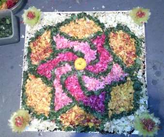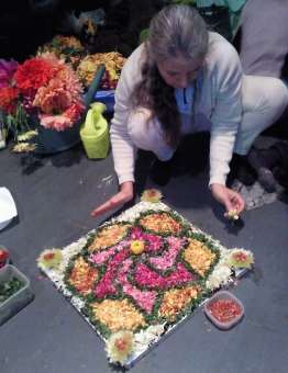 d'un tapis de fleurs confectionn� au sol � partir d'un motif