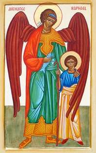 jeune homme, Tobie, et de son chien : il voyage avec eux et les accompagne fidèlement . Il s'occupe tout particulièrement des pèlerins : non seulement ceux