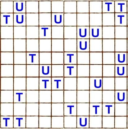 avec les 2 lettres afin que chaque ligne et chaque colonne comportent