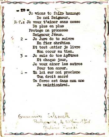 Mon carnet de chant du 20 juin 1957 , pour ma Communion Solennelle .