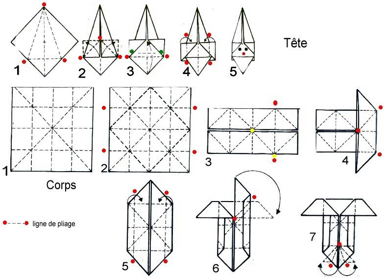 pliage suivant les points rouges . Il faut procéder de même pour