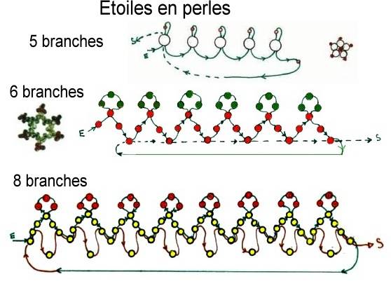 étoile à 8 branches, il faut: 57 perles du même genre et 8 plus foncées. Le