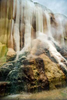 Sur les images de gauche, les geysers et la cascade pétrifiante.