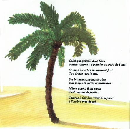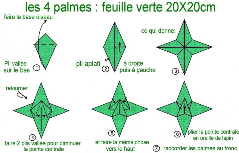 palmier il faut pour les 4 palmes : une feuille verte de 20 cm X 20 cm