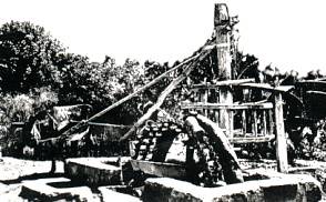 récolte de l’eau : Sur de nombreux puits furent réalisées des norias ou chaînes à godets .