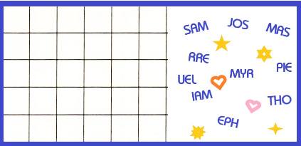 Forme 5 prénoms de 6 lettres en réunissant 2
